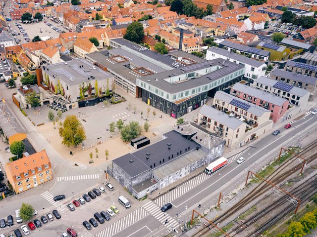 Rygraden i det nye handelskvarter er Rådhusstræde, som forbinder to nye bytorve - Stationspladsen og Kulturtorvet.